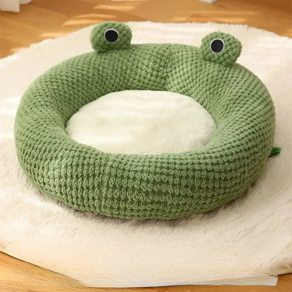 O design inspirado em um sapinho sorridente traz charme e um toque de diversão pro cantinho do seu pet.